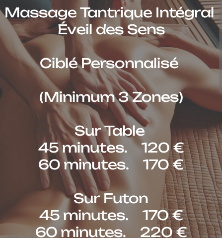 Vous connaissez et Appréciez mon Massage Tantrique Intégral Éveil des Sens avec Orgasme Tantrique et j'ai remarqué que vous avez vos Zones Favorites lors du Massage.